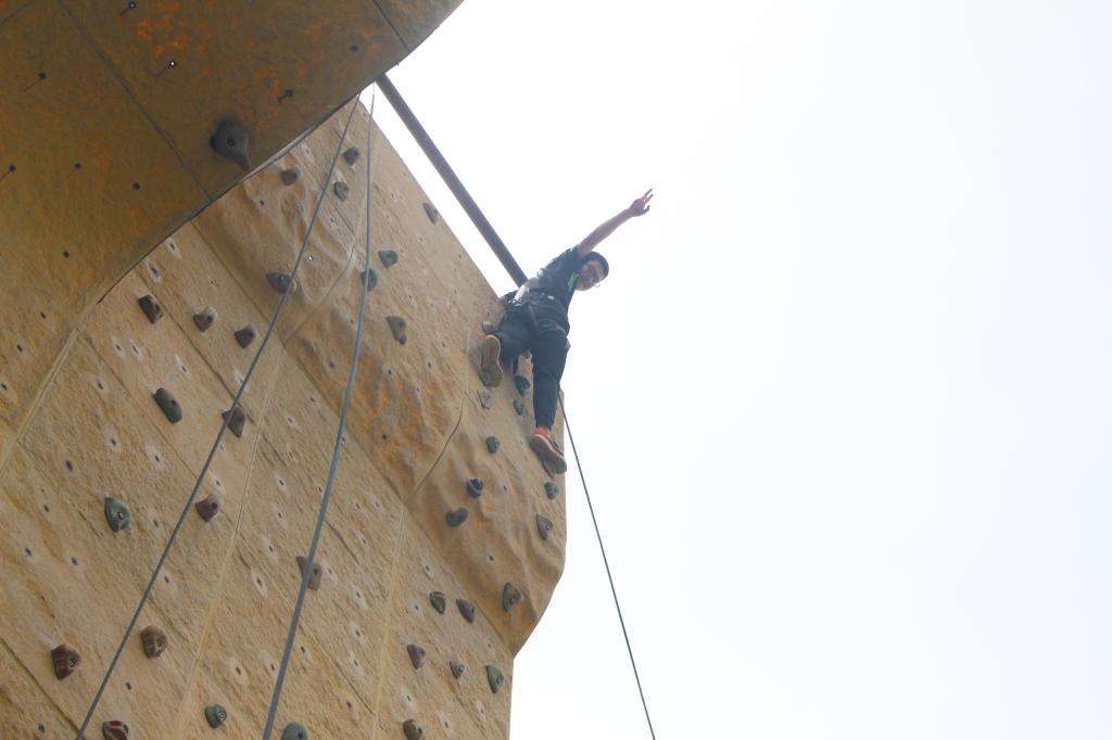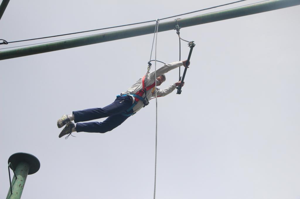 素质拓展活动中,每个队伍分别需要挑战“穿越电网”、“攀岩”、“翻越毕业墙”、“高空抓杠”、“流程管理”、“信任背摔”和“目标市场”等,每一个项目都是在实际生活的背景下进行设立。最考验大家的是“翻越毕业墙”项目,所有成员在没有任何保护措施,没有任何辅助工具,不许蹬墙等规定下,徒手搭人梯爬上距地面4.2米高的毕业墙,从上面翻越过去,然后逃生,过程既惊险又刺激,无时无刻不在挑战着伙伴们的心理承受能力和团队协作能力。每位伙伴都在队友的鼓励下迈出了勇敢的一步,完成了项目。