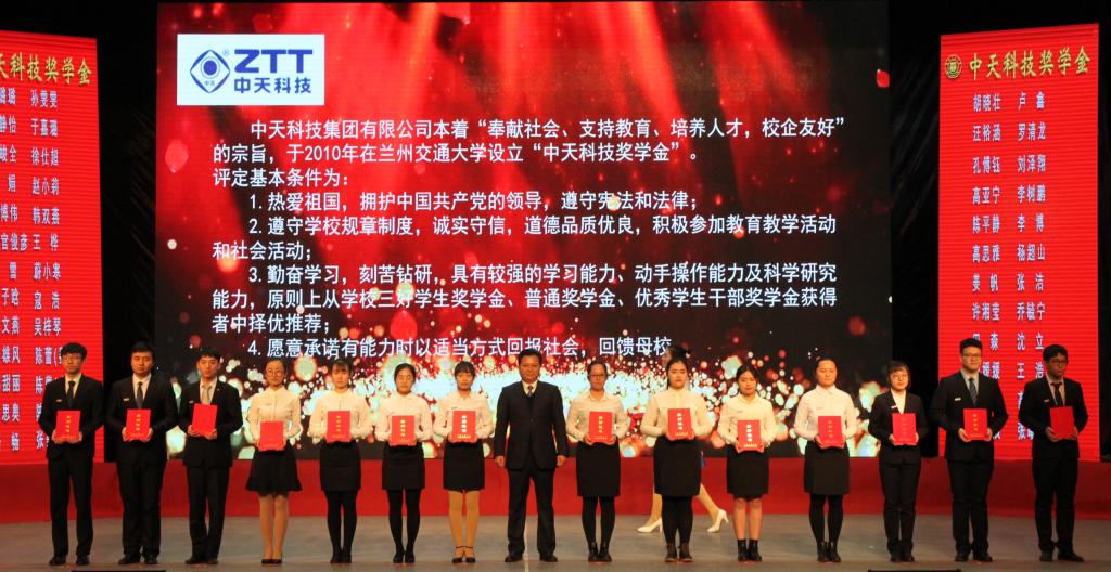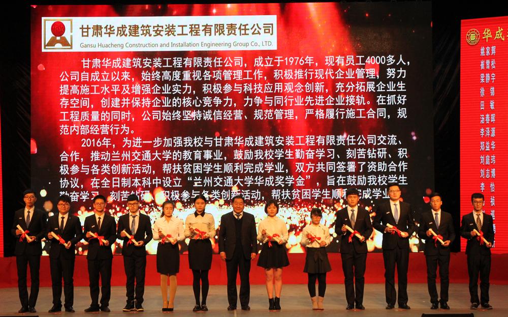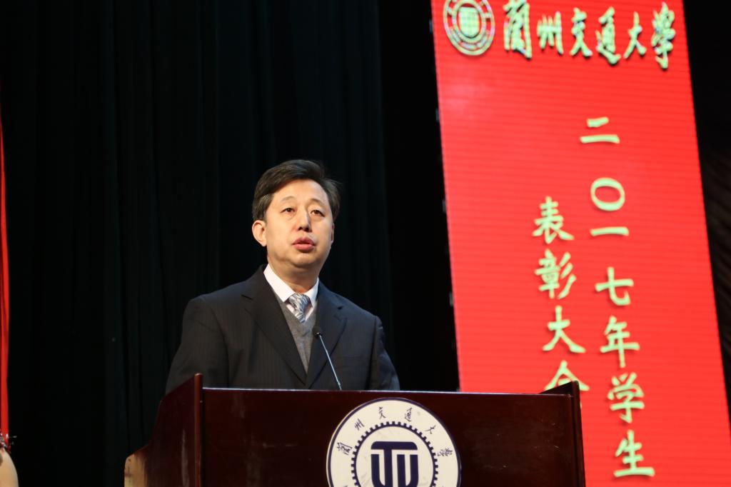 12月21日下午,2017年兰州交通大学学生工作表彰大会在学校大礼堂举行。校党委书记王萍,校长杨子江,党委副书记、常务副校长李引珍,副校长陈兴冲,党委副书记买寿清,副校长马军党、党建武等校领导出席大会。中国电信甘肃公司党委书记、总经理秦学寿,兰州铁路局人事处副处长岳令,中天科技集团副董事长丁铁骑,甘肃华成建筑安装工程集团有限责任公司董事长范效彩应邀出席大会。