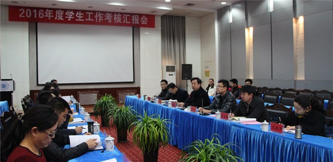 马军党副校长在总结中指出,2016年度全校学生工作思路清晰,重点突出,特色鲜明,总体工作平稳,稳中有升。一年来,各学院(部)着力推进文明宿舍创建工作,齐抓共管形成合力;不断强化学生教育管理,全员育人构建联动机制;坚持开展“四深入四宣讲”活动,工作作风长抓不懈;科技文体竞赛蓬勃开展,丰富了学生的学习生活。马军党副校长强调,各学院(部)要进一步加强教育管理中的薄弱环节,尤其针对近期学生安全压力较大的情况,要将学生安全工作紧抓不放;做好就业工作,确保优势不松懈;在宿舍建设方面求实效、见真招,进一步提升宿舍管理水平,打牢文明宿舍建设基础;积极广泛开展科技竞赛与文体活动,尤其要开展好文体活动,确保学生全面发展;持续推进“三要求一倡导”,即上课关闭手机、公共场所全面禁烟、校园内佩戴校徽和倡导上课背书包;学生工作人员要开拓工作思路,创新工作方法,力争学生工作再上新台阶。