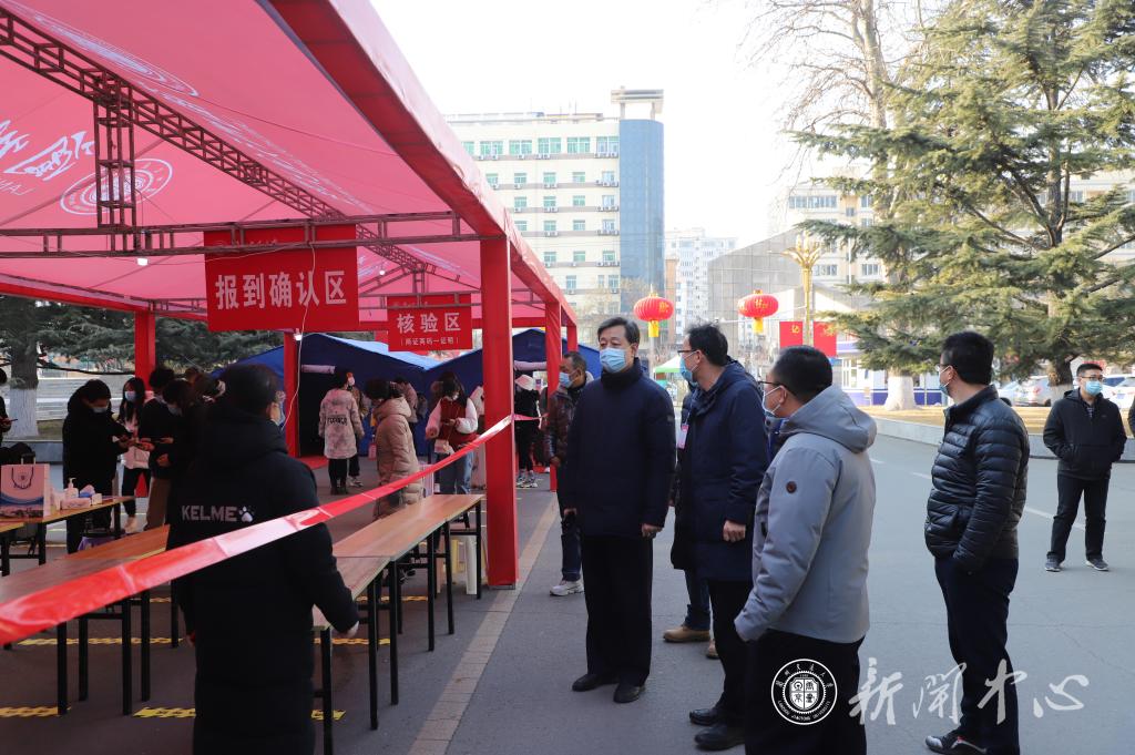 按照学校2022年春季学期开学返校方案,2月25日至2月28日,我校学生将分批次错峰返校报到。为确保学生返校报到各项工作规范有序,做好疫情防控工作,保障师生健康安全,2月25日上午,副校长马军党带领党(校)办、学生处、保卫处相关工作人员,检查了学生开学返校报到及疫情防控工作。