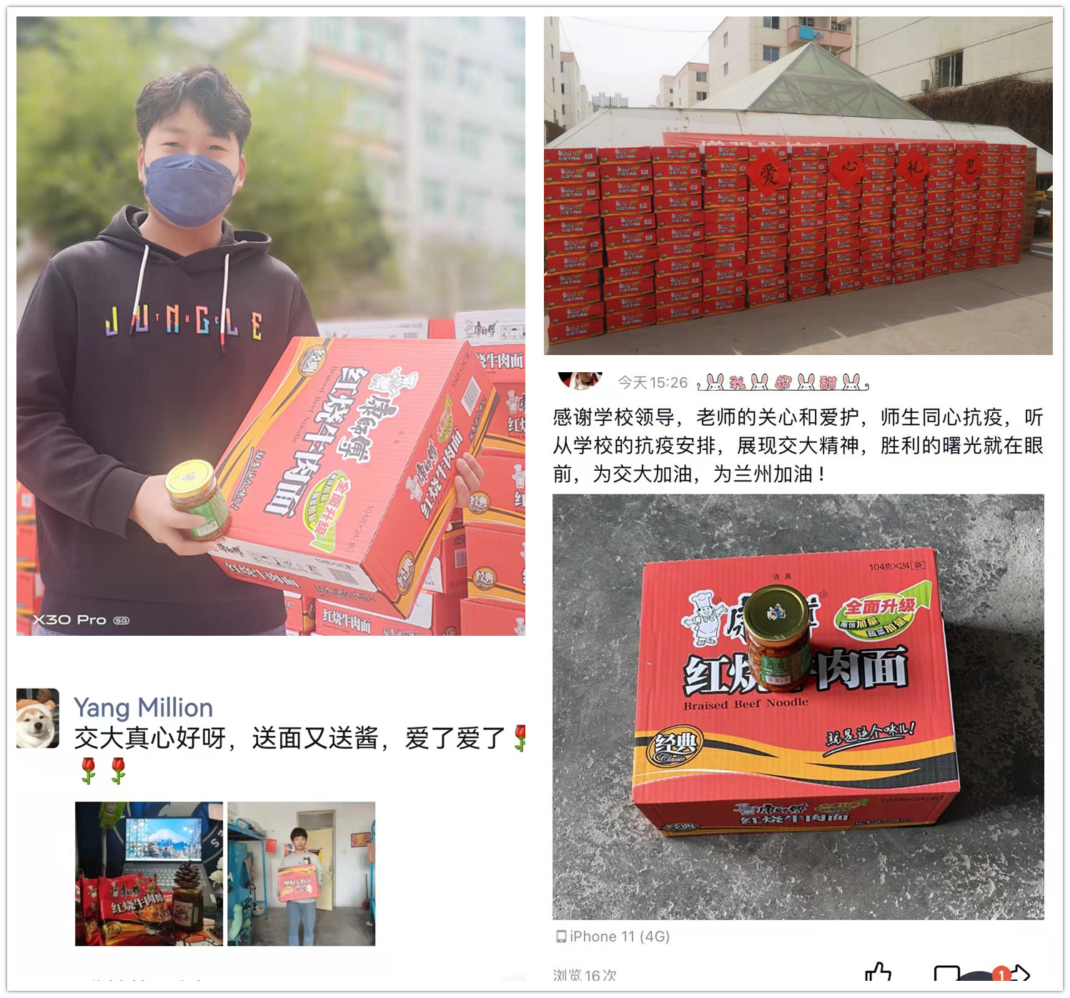 与此同时,学校向桃海公寓、东方公寓各宿舍派发方便面和拌饭酱,为同学们送去关心关爱,这是继3月21日学校为校外学生公寓发放牛奶之后的关爱再出发。