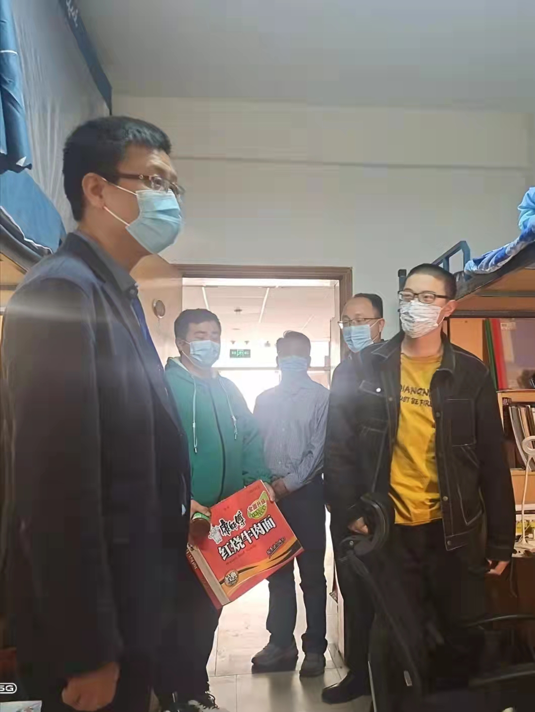 4月3日,校党委常委、副校长马军党、贡力深入桃海公寓、东方公寓学生宿舍,关心慰问校外公寓住宿学生。校领导充分肯定同学们自学校封闭管理以来始终如一遵守学校各项防控规定,感谢同学们以大局为重,自觉牺牲部分活动自由和生活便利,始终和全校师生在一起经受这场战“疫”考验,希望同学们能够继续坚定信心、守望相助,坚决支持和服从学校统一安排,团结一心,共克时艰,以实际行动彰显新时代青年学子的使命与担当。针对同学们学习生活中的普遍性、倾向性问题,校领导及时协同相关部门予以解决。