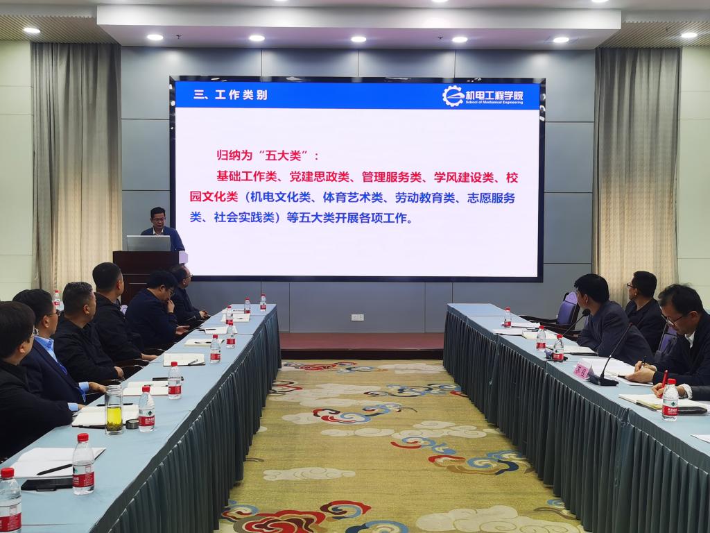 会上,党委学生工作部、党委保卫工作部、学生公寓管理中心、招生就业处负责人依次就近期重点工作进行了安排部署。机电工程学院和经济管理学院学生工作负责同志就各自学院学生工作思路、举措和典型经验进行了交流。