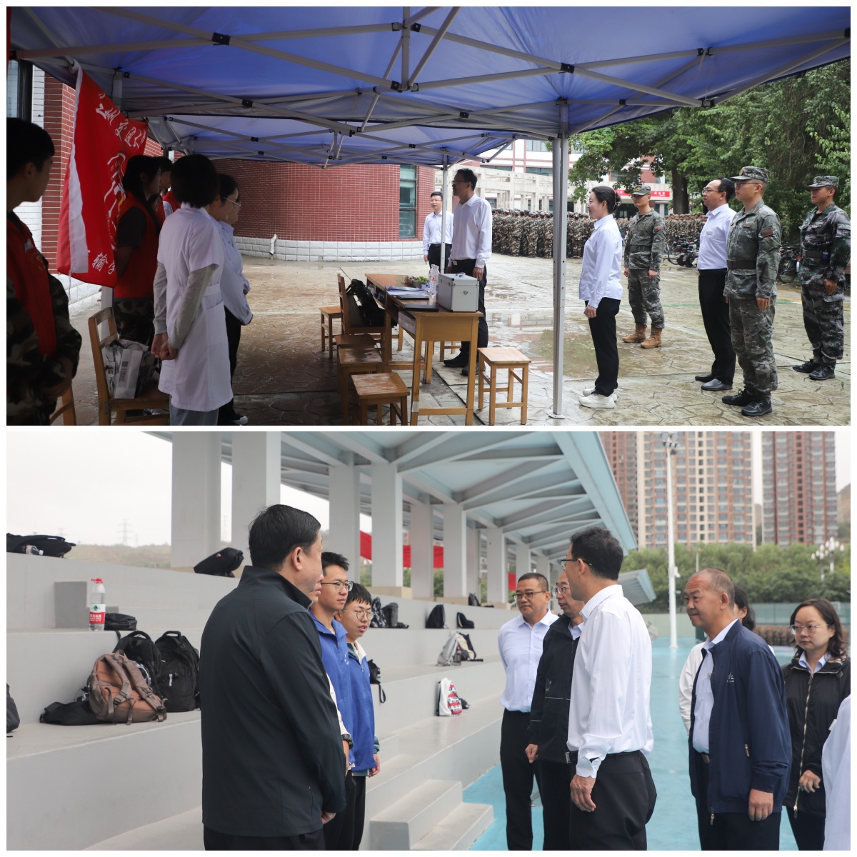 9月4日上午,副校长苏程在学生工作(部)处、党委人民武装部相关负责人的陪同下,赴军训训练场地检查指导军训工作,并看望承训教官、带队教师、医务工作人员和参训学生。