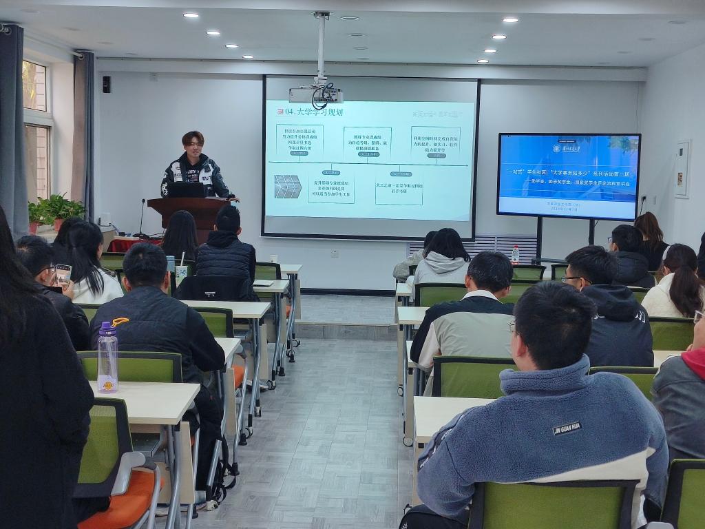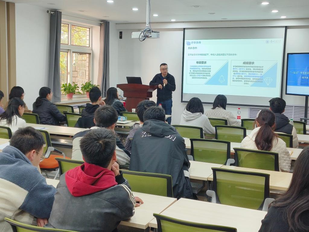 为进一步提高我校学生对校园规章制度的认知,结合学生社区特色文化和学生成长成才需求,激励学生发挥“四自”精神,提升学生综合素质能力、促进学生全面发展,11月7日下午,兰州交通大学“一站式”学生社区举办“大学事务知多少”系列活动第二期——助学金、励志奖学金、国家奖学金评定流程宣讲会。