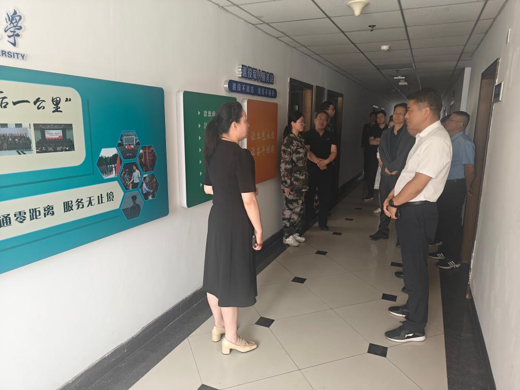 考察组实地走访了我校退役军人服务站,详细了解了学校在退役军人学业指导、就业帮扶、教育培训等方面的具体举措和成效。学校党委人民武装部负责同志汇报了近年来退役军人工作的开展情况,双方围绕退役军人服务保障政策落实、资源对接、服务优化等议题进行了深入交流。